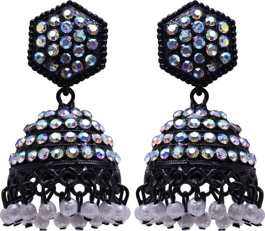 Black Crystal Pearl Oxidized Jhumki Earrings