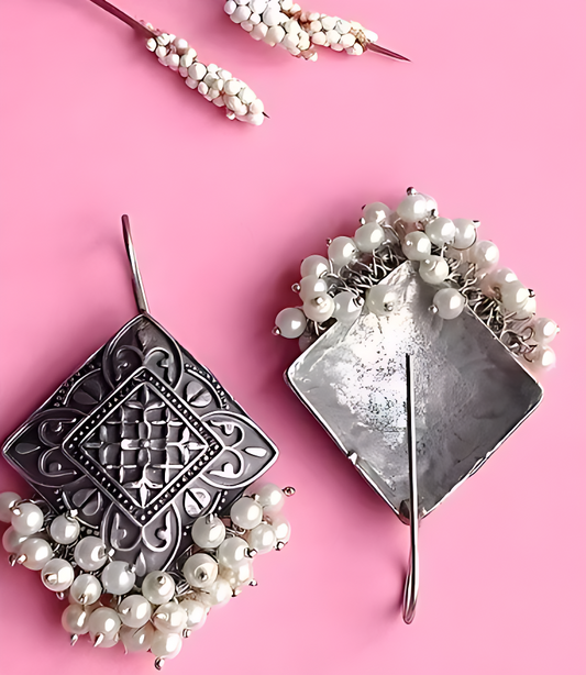 SAVE 50%Classic Pearl Oxidised Gold Jhumkhas