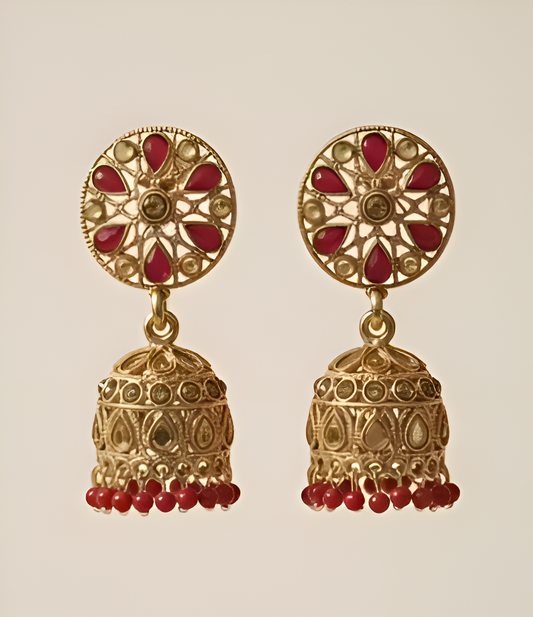 Ruby Lotus Traditional Gold-Finish Jhumkas